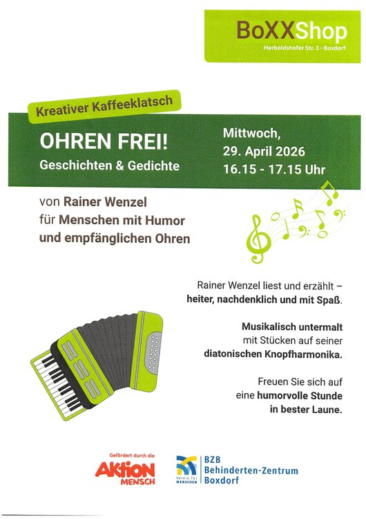 - 29.04.2026 Was für die Ohren: Rainer Wenzel kommt und umrahmt lustige und nachdenkliche Alltagsgeschichten musikalisch